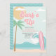 Surf Up ! Surfing Beach invitation d'anniversaire avec vagues turquoise et surf rose.