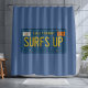 Travel back in time to the year 1969 with this fun retro-inspired California license plate design. Bold embossed-look yellow text with the custom tag number "SURFS UP" pops on the blue contrast. The vintage style lettering, tag stickers and panhead screws bring a nostalgic vibe. This indigo blue shower curtain is the perfect way to bring the coast into your bathroom decor. Stay salty! | Matching bath mat available in store. This listing includes the shower curtain only.