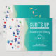 A fun Birthday Beach Party Invitation. Design features a aerial view illustration of the beach and surfers on the back. The modern sans font template is super easy to customize using the template provided. Perfect Summer party invite for any ages birthday party!