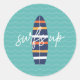 Surfs Up surfboard and waves Birthday Party Classic Round Sticker