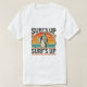 Here’s another trending vintage-style t-shirt design featuring a retro beach scene with a surfer, a faded sunset, and the phrase "Surf’s Up." 🌊🌞