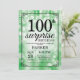 Surprise 100th Birthday Invitation with Green String Lights with Green Glitter Background. Green Birthday. Adult Birthday. Men or Women Bday Invite. 13th 15th 16th 18th 20th 21st 30th 40th 50th 60th 70th 80th 90th 100th, Any age. For further customization, please click the "Customize it" button and use our design tool to modify this template.