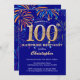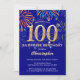 Surprise 100th Birthday Navy Blue & Gold Firework Invitation