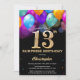 Surprise 13th Birthday Black and Gold Balloons Invitation