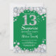 Surprise 13th Birthday Green and Silver Diamond Invitation