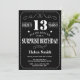 Surprise 13th Birthday Invitation Chalkboard. Black and White Background. Adult Birthday. Male Men or Women Birthday. Kids Boy or Girl Lady Teen Teenage Bday Invite. 13th 15th 16th 18th 20th 21st 30th 40th 50th 60th 70th 80th 90th 100th. Any Age. For further customization, please click the "Customize it" button and use our design tool to modify this template.