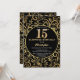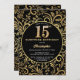 Surprise 15th Birthday Black and Gold Floral Invitation