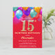 Surprise 15th Birthday Red and Gold Balloons Invitation