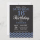 Surprise 16th Birthday Invitation with Black and Blue Chevron. Chalkboard. Kids Birthday. Boy or Girl Bday Invite. For further customization, please click the "Customize it" button and use our design tool to modify this template.