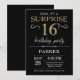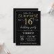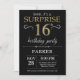 Surprise 16th Birthday Invitation with Black and Gold Glitter Background. Chalkboard. Kids Birthday. Boy or Girl Lady Teen Teenage Bday Invite. Any age. For further customization, please click the "Customize it" button and use our design tool to modify this template.