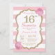 Surprise 16th Birthday Invitation. Pink and Gold. Gold Glitter. Pink and White Stripes. Pink Floral Flower. Kids Birthday. Girl Lady Teen Teenage Birthday Party. For further customization, please click the "Customize it" button and use our design tool to modify this template.