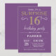 Surprise 16th Birthday Invitation with Red and Purple Glitter Background. Chalkboard. Kids Birthday. Boy or Girl Lady Teen Teenage Bday Invite. Any age. For further customization, please click the "Customize it" button and use our design tool to modify this template.