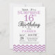 Surprise 16th Birthday Invitation with Purple Chevron. Black and White. Kids Birthday. Boy or Girl Bday Invite. For further customization, please click the "Customize it" button and use our design tool to modify this template.