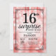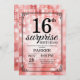 Surprise 16th Birthday Invitation with Red String Lights with Red Glitter Background. Red Birthday. Kids Birthday. Boy or Girl Bday Invite. 13th 15th 16th 18th 20th 21st 30th 40th 50th 60th 70th 80th 90th 100th, Any age. For further customization, please click the "Customize it" button and use our design tool to modify this template.