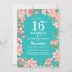 Surprise 16th Birthday Pink Floral Flowers Teal Invitation