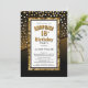 Begin your birthday celebration planning with this unique modern black and gold surprise 18th birthday party invitation.