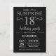 Surprise 18th Birthday Invitation with Black and Silver Glitter Background. Chalkboard. Adult Birthday. Men or Women Bday Invite. Any age. For further customization, please click the "Customize it" button and use our design tool to modify this template.
