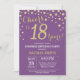 Surprise 18th Birthday Purple and Gold Diamond Invitation