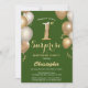 Surprise 1st Birthday Green and Gold Balloons Invitation
