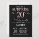 Surprise 20th Birthday Black and Rose Pink Gold Invitation