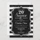 Surprise 20th Birthday - Black White Silver Invitation