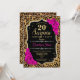 Feminine black, hot pink design with faux glitter gold. Features animal leopard cheetah pattern, fuchsia roses, script font and confetti. Perfect for an elegant birthday party. Can be personalized to show any age. Message me if you need further customization.