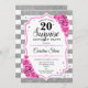 Surprise 20th Birthday - Silver White Pink Invitation