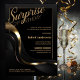 Organize your surprise milestone 21st birthday celebration in style with our chic and sophisticated black party invitation. With its customizable text, you can personalize the invitation. This invitation features a fine gold frame that encloses the text, adding a touch of luxury to your special occasion. The gold and grey abstract wavy ribbon design adds a modern and stylish look to the invitation and creates a sense of flow and movement. The overall design is understated yet beautiful, making it perfect for those who prefer a more refined aesthetic.