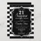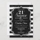 Classy design with with black and white stripes, script font and glitter silver. Perfect for an elegant birthday party. Can be personalized to show any age. Message me if you need further customization.