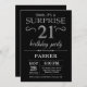 Surprise 21st Birthday Invitation with Black and Silver Glitter Background. Chalkboard. Adult Birthday. Men or Women Bday Invite. Any age. For further customization, please click the "Customize it" button and use our design tool to modify this template.