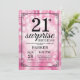 Surprise 21st Birthday Invitation with Pink String Lights with Pink Glitter Background. Pink Birthday. Adult Birthday. Men or Women Bday Invite. 13th 15th 16th 18th 20th 21st 30th 40th 50th 60th 70th 80th 90th 100th, Any age. For further customization, please click the "Customize it" button and use our design tool to modify this template.