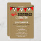 Cette invitation surprise à la fête du 30e anniversaire apparaît sur un arrière - plan en carton brun. Le mot surprise est en haut avec des drapeaux en rouge et blanc en dessous. Puis les mots "30th Birthday Celebration" apparaissent avec vos détails de fête surprise. Il s'agit d'un grand invitation de typographie avec un flair vintage pour une fête surprise de 30 ans. Copyright henishouseo
