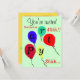 Surprise 40e anniversaire ou toute année importante. Ballons d'anniversaire volant colorés en rouge orange bleu vert jaune. Joli arrière - plan vert menthe. Des lettres de fête sont écrites à travers des ballons. Parfait anniversaire invitations amusantes pour 40ème anniversaire ou TOUT autre événement important Anniversaire pour homme ou femme! Backside a la date de la fête et les détails de l'emplacement sur un arrière - plan jaune. Oeuvre originale Design par TamiraZDesigns.