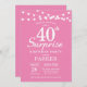 Invitation surprise 40e anniversaire avec lumières à cordes. Arrière - plan rose. Femme Lady Élégante anniversaire moderne. 13ème 15ème 16ème 18ème 20ème 21ème 30ème 40ème 50ème 60ème 70ème 80ème 90ème 100ème, Tout âge. Pour plus de personnalisation, cliquez sur le bouton "Customiser" et utilisez notre outil de conception pour modifier ce modèle.