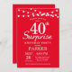Invitation surprise 40e anniversaire avec lumières à cordes. Arrière - plan rouge. 13ème 15ème 16ème 18ème 20ème 21ème 30ème 40ème 50ème 60ème 70ème 80ème 90ème 100ème, Tout âge. Pour plus de personnalisation, cliquez sur le bouton "Customiser" et utilisez notre outil de conception pour modifier ce modèle.