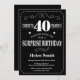 Surprise 40th Birthday Black and White Chalkboard Invitation
