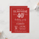 Surprise 40th Birthday Invitation with Red Background. Adult Birthday. Men or Women Bday Invite. 13th 15th 16th 18th 20th 21st 30th 40th 50th 60th 70th 80th 90th 100th, Any age. For further customization, please click the "Customize it" button and use our design tool to modify this template.