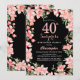 Surprise 40th Birthday Pink Floral Flowers Black Invitation