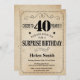 Surprise 40th Birthday Rustic Vintage Retro Invitation