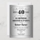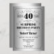Surprise 40th birthday party invitation for men or women. Elegant retro faux silver foil and black design. Features stylish typography font. Cheers to 40 years! Can be customized into any age. Printed Zazzle invitations or instant download digital template.