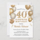 Surprise 40th Birthday White and Gold Balloons Invitation