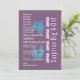 This modern design in purple, blue and white is an elegant way to invite your guests to a SURPRISE 40th birthday party. All text is totally customizable. You can change the background colour or the text colour for a different look. Although this design is featured on a basic paper, I recommend the linen finish paper, which gives your invitation a more elegant touch, or the premium ice hued metallic paper, which will give your invitations a festive shimmer and shine.