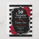 Feminine black, white, red design with faux glitter silver. Features black and white stripes, red roses, script font and confetti. Perfect for an elegant birthday party. Can be personalized to show any age. Message me if you need further customization.