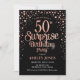 Surprise 50th Birthday Party - Black & Rose Gold Invitation
