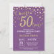 Surprise 50th Birthday Purple and Gold Diamond Invitation