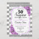 Feminine white, lavender design with faux glitter silver. Features stripes, pastel purple lilac roses, script font and confetti. Perfect for an elegant birthday party. Can be personalized to show any age. Message me if you need further customization.