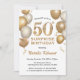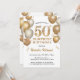 Surprise 50th Birthday White and Gold Balloons Invitation