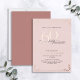 This beautiful invitation features hand lettered calligraphy artfully presenting 'sixty' in luxurious hand lettering against a pink background, adorned with delicate swirls in the corners top and bottom in real rose gold foil, along with the name and the number 60. This image will have all your guests excitedly anticipating your fabulous sixtieth festivities!
