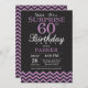 Surprise 60e anniversaire Invitation avec Chevron noir et violet. Tableau de bord. Anniversaire adulte. Homme ou Femmes Anniversaire Invitation. Pour plus de personnalisation, cliquez sur le bouton "Customiser" et utilisez notre outil de conception pour modifier ce modèle.