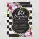 Surprise 60th Birthday Invitation for women. Black and Gold Birthday Party Invite. Gold Glitter. Purple Watercolor Floral Flower. Black and White Stripes. Chalkboard. Printable Digital. For further customization, please click the "Customize it" button and use our design tool to modify this template.S